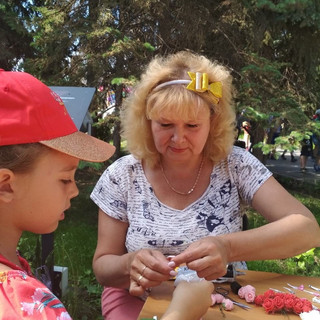Сегодня в городском парке "Покровский" руководитель кружка прикладного творчества Дома культуры "Искра" Светлана Борисовна Наумова провела мастер-класс "Декоративная брошь-заколка с розочками" . Дети с большим удовольствием делали для себя украшения!